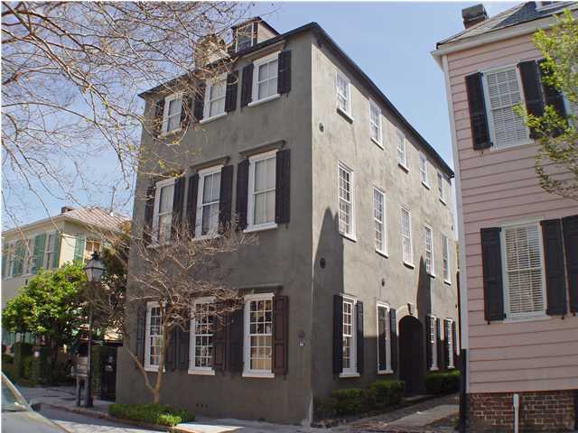 Traditional solid brick single house with stucco overlay (circa 1785) offered with two off-street parking spaces makes a great full or part time residence. This one is easy to lock and leave. House features a formal living room with fireplace, dining room, four bedrooms, two and a half baths, finished attic with heat and air. This house lives wonderfully as it has a large kitchen/den with 11+ foot ceiling, granite countertops, tile floor, and two French doors with arched fan lights that open to an intimate courtyard with fountain. Yearly condo fee of $1725 (approximately $136/month) covers common area insurance and landscape maintenance.